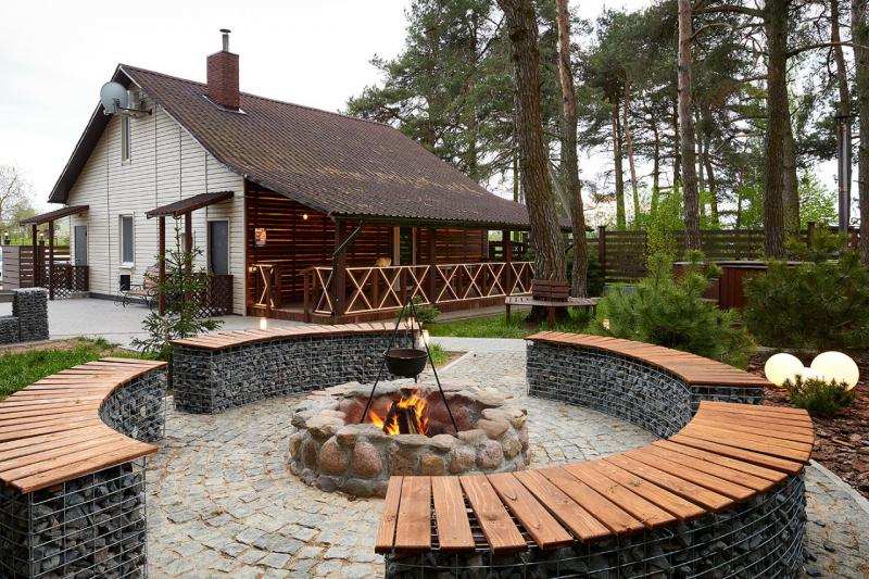 Дом оснащен всем необходимым: стиральная машина, духовой шкаф, посудомоечная машина, в каждой комнате телевизоры и кондиционеры, wi-fi, 2 санузла, 2 душа, сауна, финская купель, детская площадка, камин, 8 спальных мест.